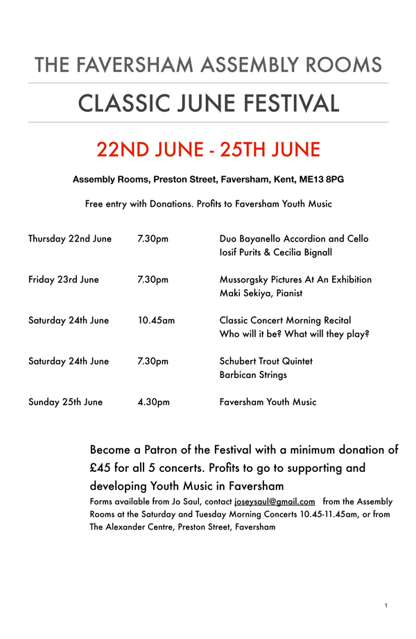Archived 22nd June to 25th June 2017 - CLASSIC JUNE FESTIVAL - at The Assembly Rooms